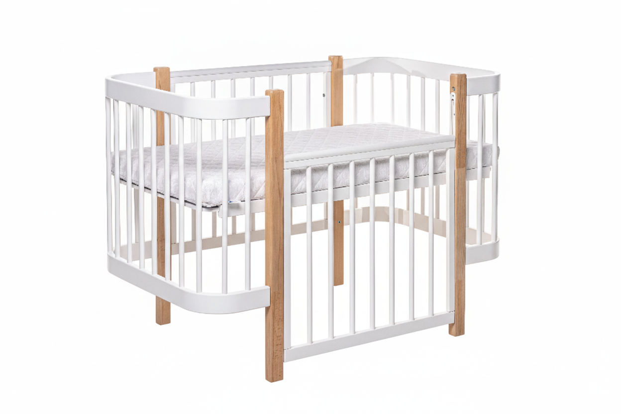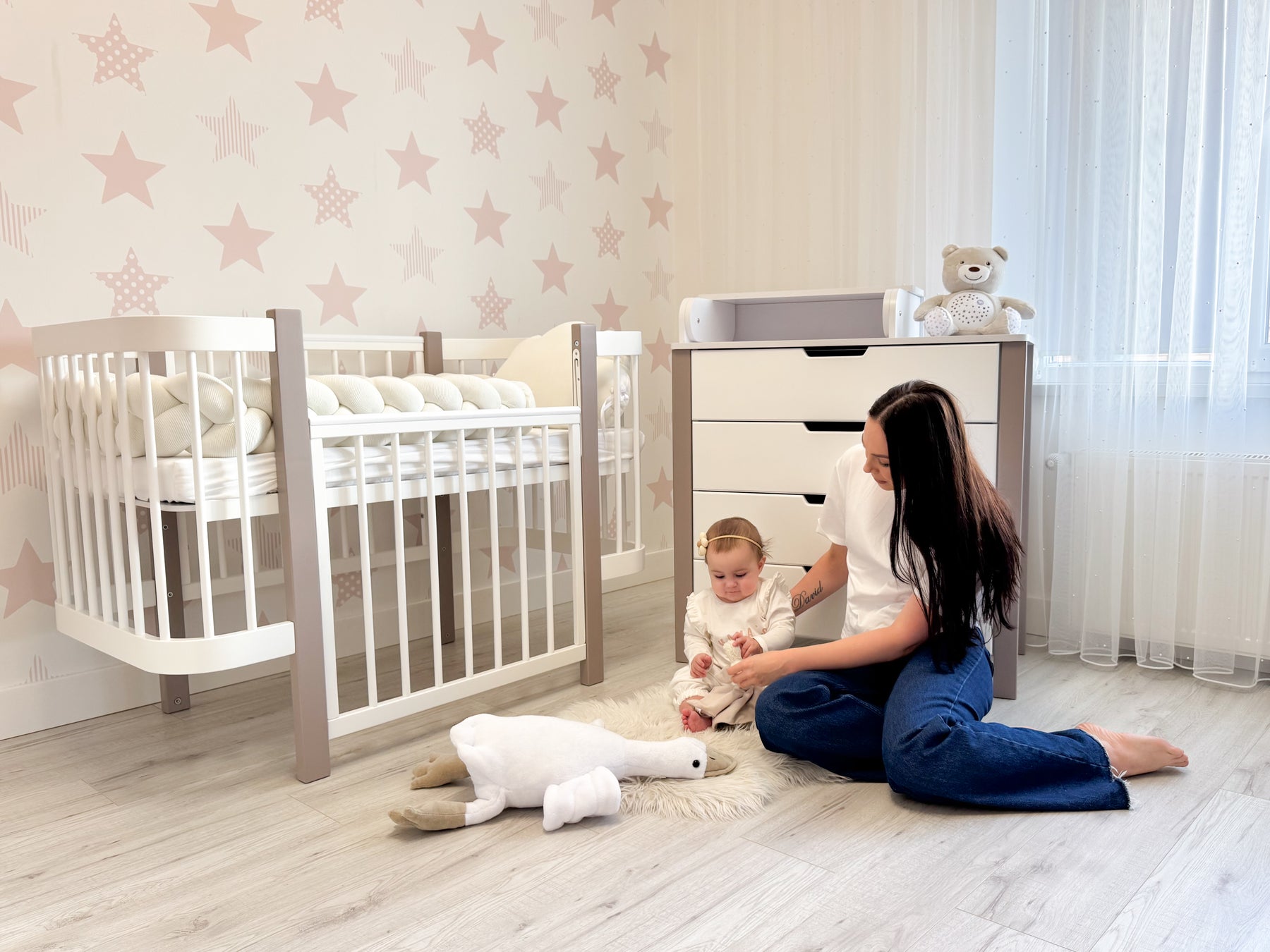 Patogumas tėvams: Patikimas šoninės dalies nuleidimo mechanizmas – tai tikra dovana tėvams. Patogu prikelti kūdikį, maitinti naktį ar pakeisti patalynę be varginančio lenkimosi. Nuimama šoninė dalis taip pat leidžia naudoti lovytę kaip pereinamąją arba pristumti ją prie tėvų lovos, sukuriant saugų bendro miegojimo sprendimą.