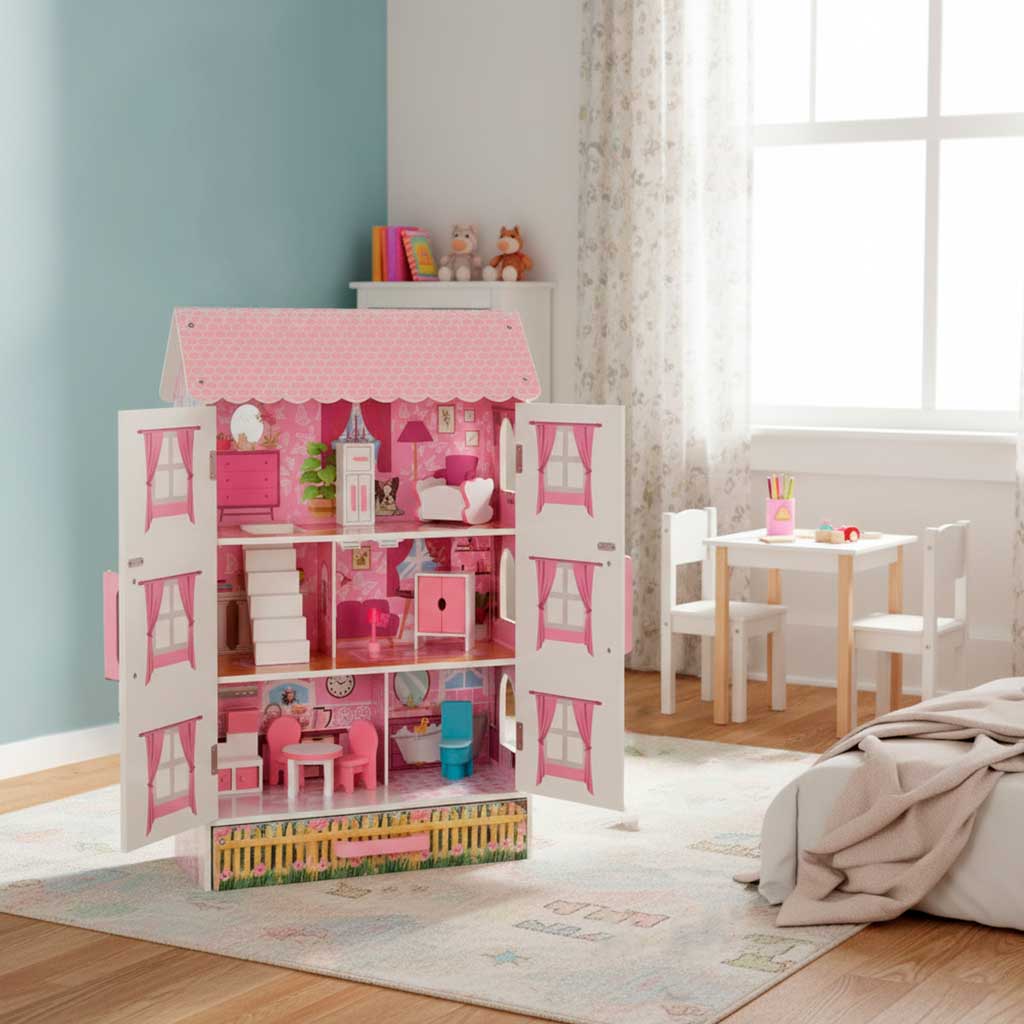 Didelė, modernaus stiliaus virtuvė yra ne tik puikus žaislas, bet ir puikus dekoratyvinis elementas vaiko kambaryje.