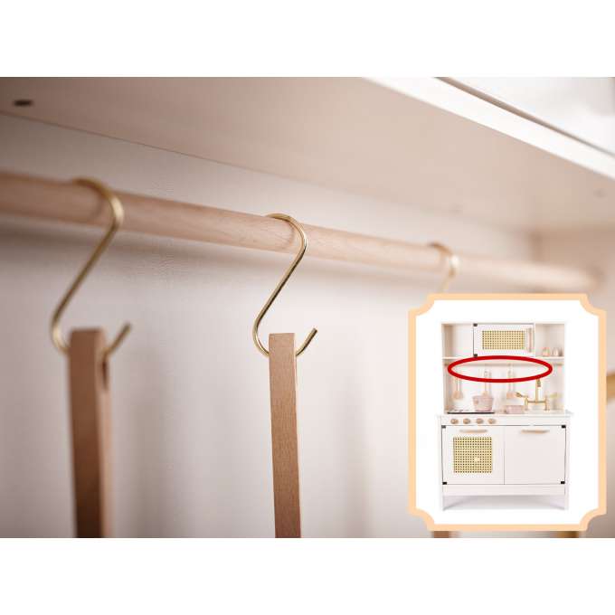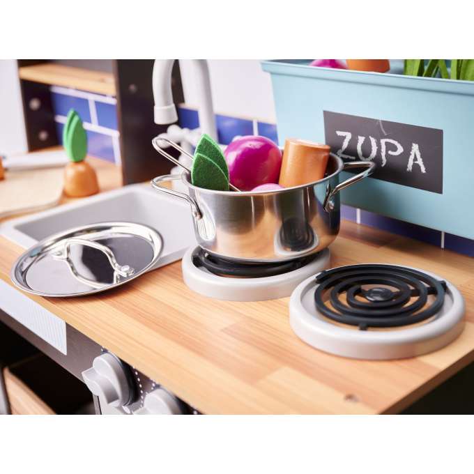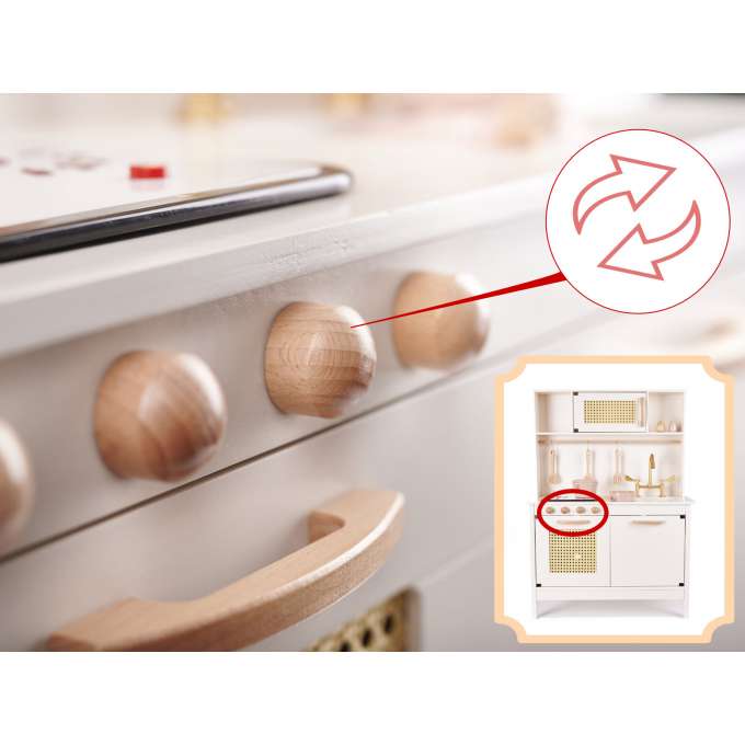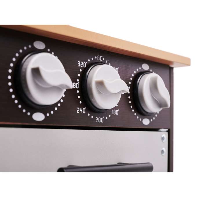 Nepamirskime, kad virtuvės prietaisas malonumas yra tas, kurio metu mažyliai turi prisiimti suaugusiųjų vaidmenj.Medinė virtuvė leis jums paaiškinti vaikams galimus pavojus ir orkaitės veikimą be nudegimo rizikos.