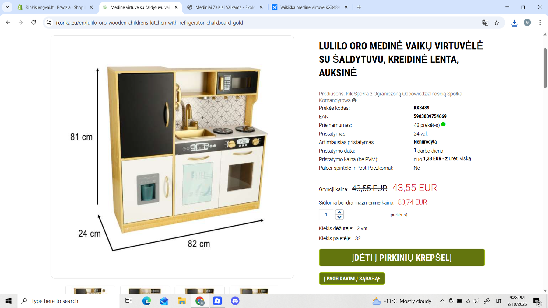 Pakuotės matmenys: 82 cm x 42 cm x 19 cm